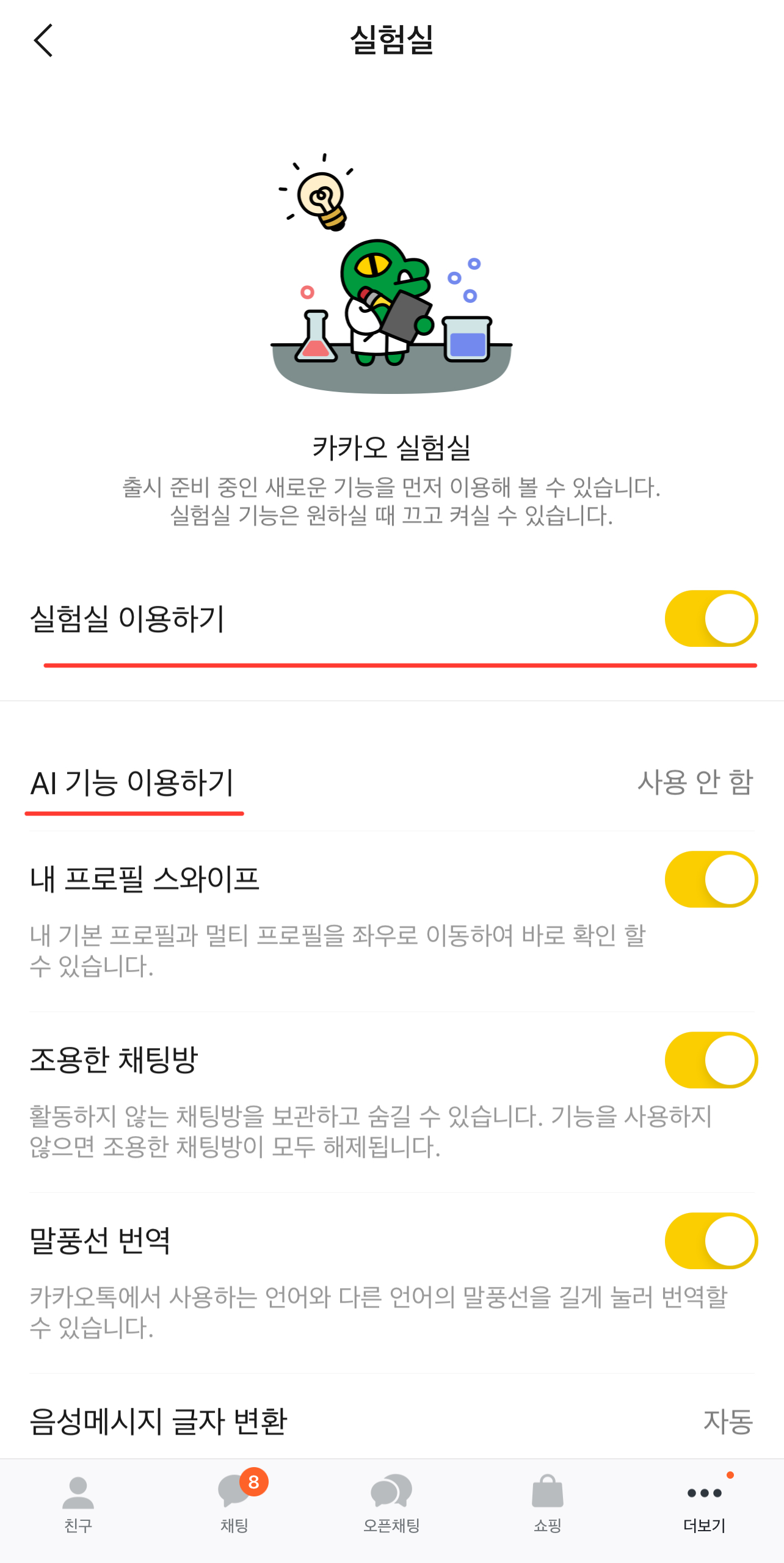 5. 실험실 이용하기 클릭 후 AI 기능 이용하기 클릭