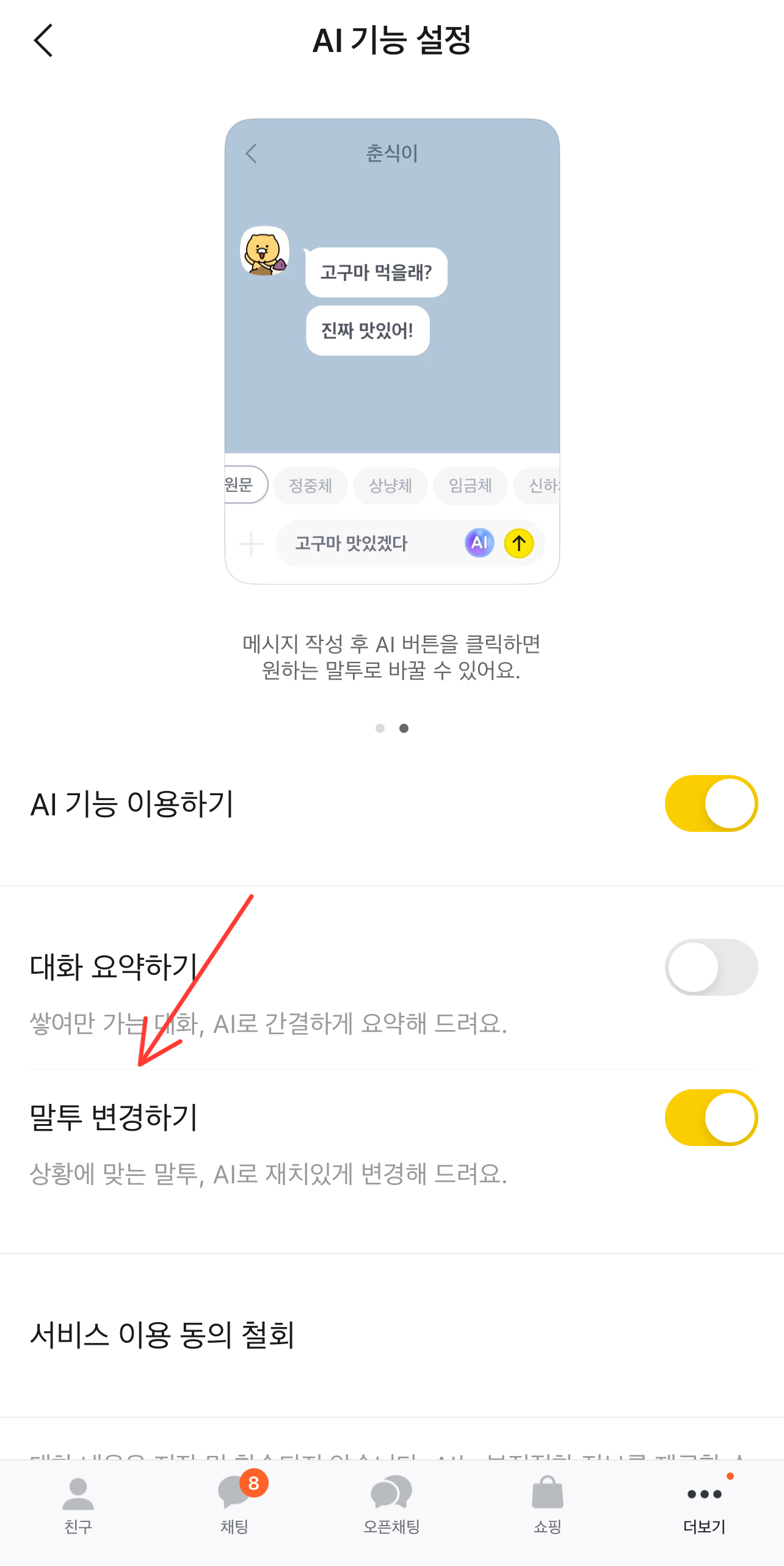 카카오톡 ai 말투 사용법
