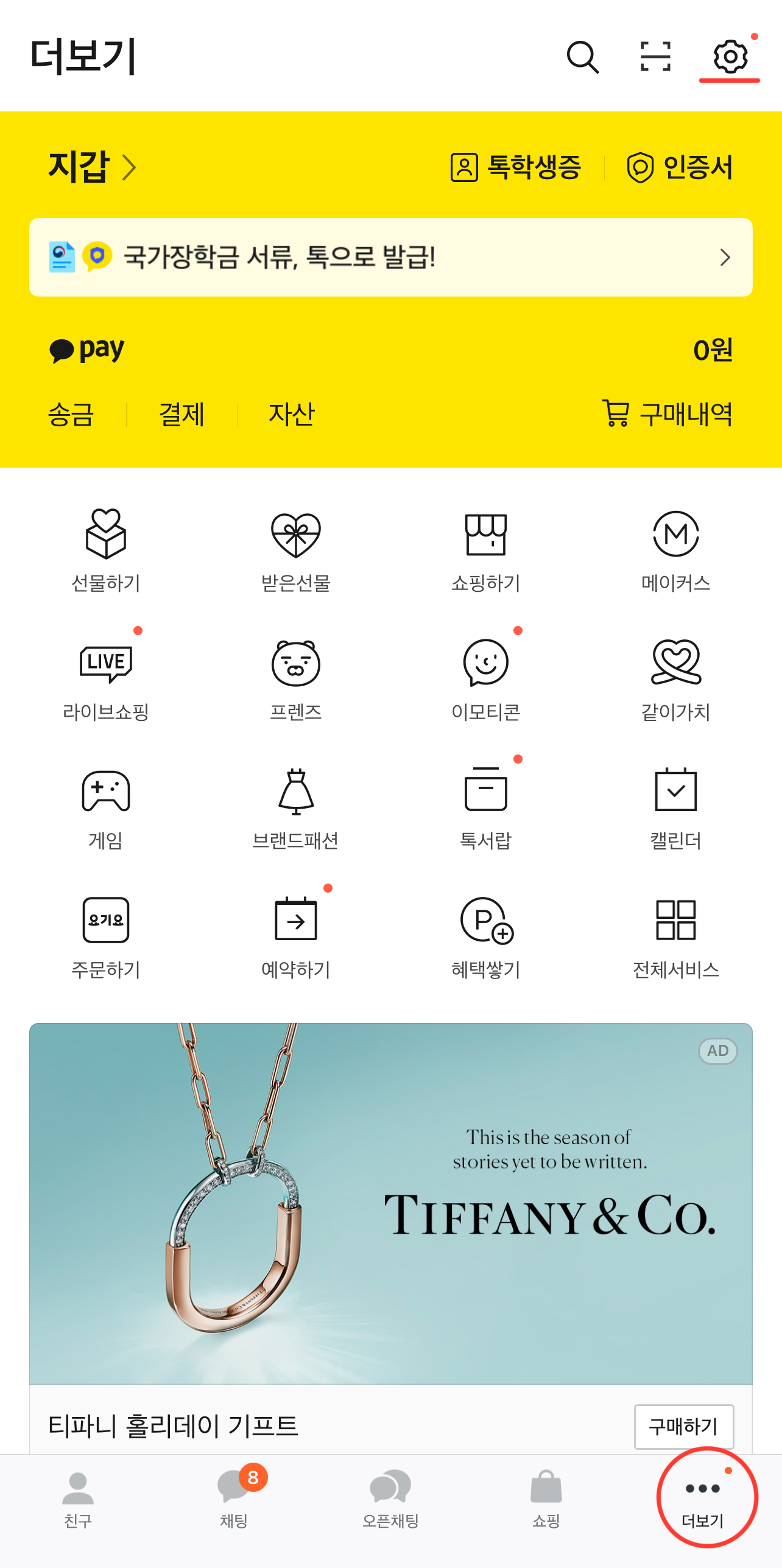 3. 하반에 더보기 클릭 후 상단에 톱니바퀴 모양으로 생긴 설정 클릭