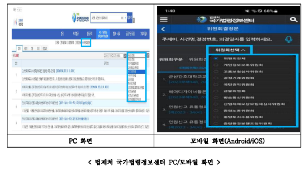 한편, 위원회 결정문은 사용자별 이용 편의성을 위해 오픈API와 웹문서(HTML)로 제공되며 국가법령정보센터(www.law.go.kr), 법령정보 공동활용(open.law.go.kr), 공공데이터포털(www.data.go.kr) 등에서 서비스된다고 합니다.