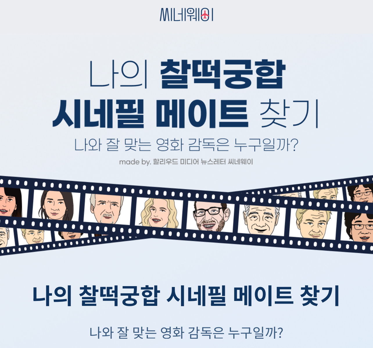 나와 잘 맞는 영화 감독은 누구인지 알아볼 수 있는 씨네웨이에서 만든 나의 찰떡궁합 시네필 메이트 찾기 테스트를 소개드리려고 합니다.