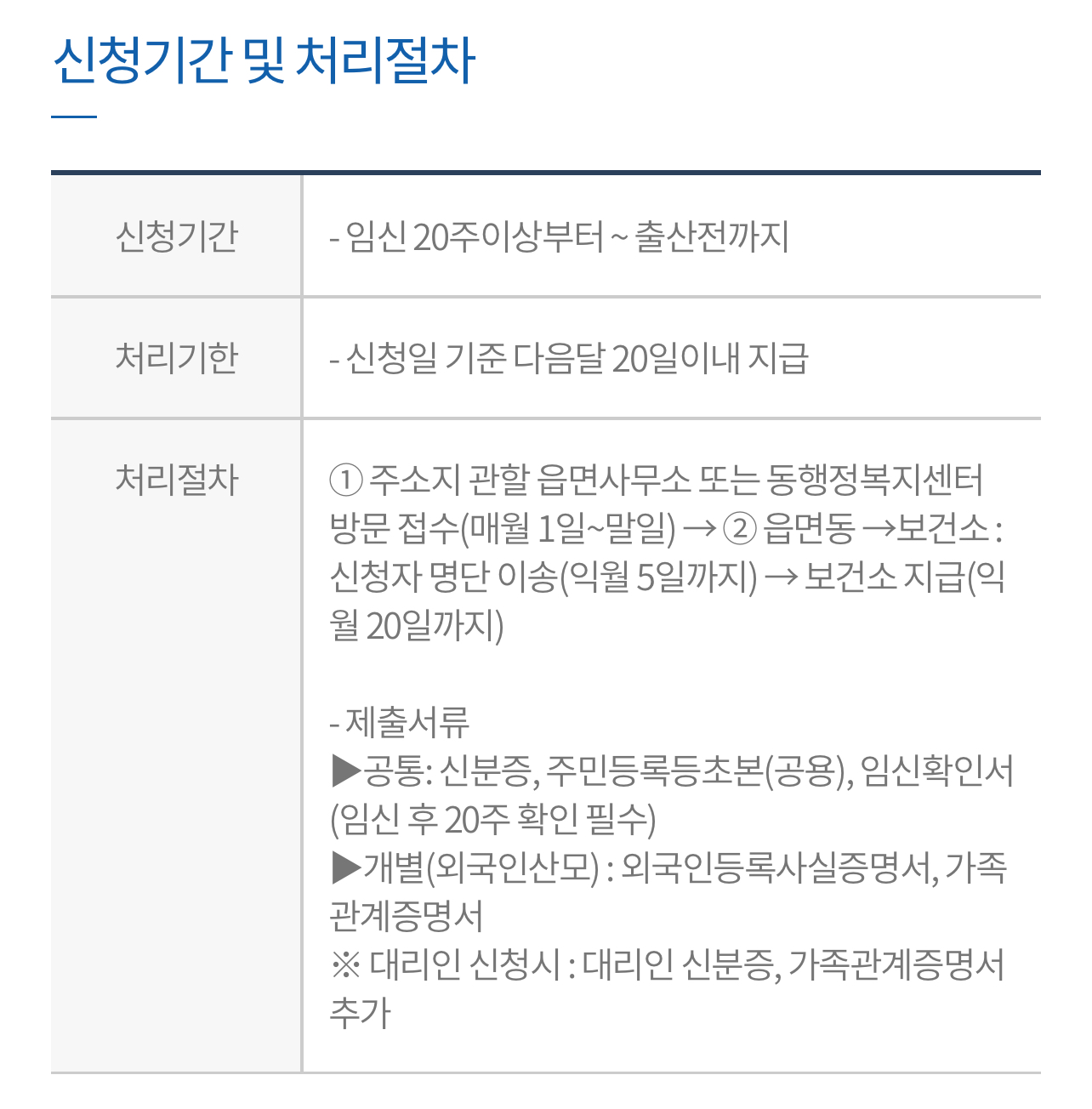 ▶공통: 신분증, 주민등록등초본(공용), 임신확인서(임신 후 20주 확인 필수)