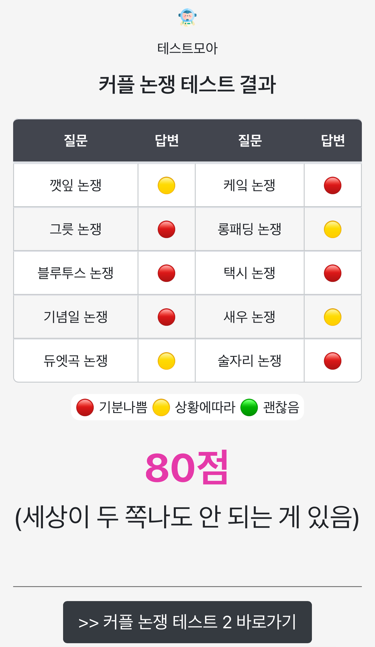 그중에서 나는 어떨지 알아보는 테스트모아에서 나온 커플 논쟁 테스트를 소개드리려고 합니다.