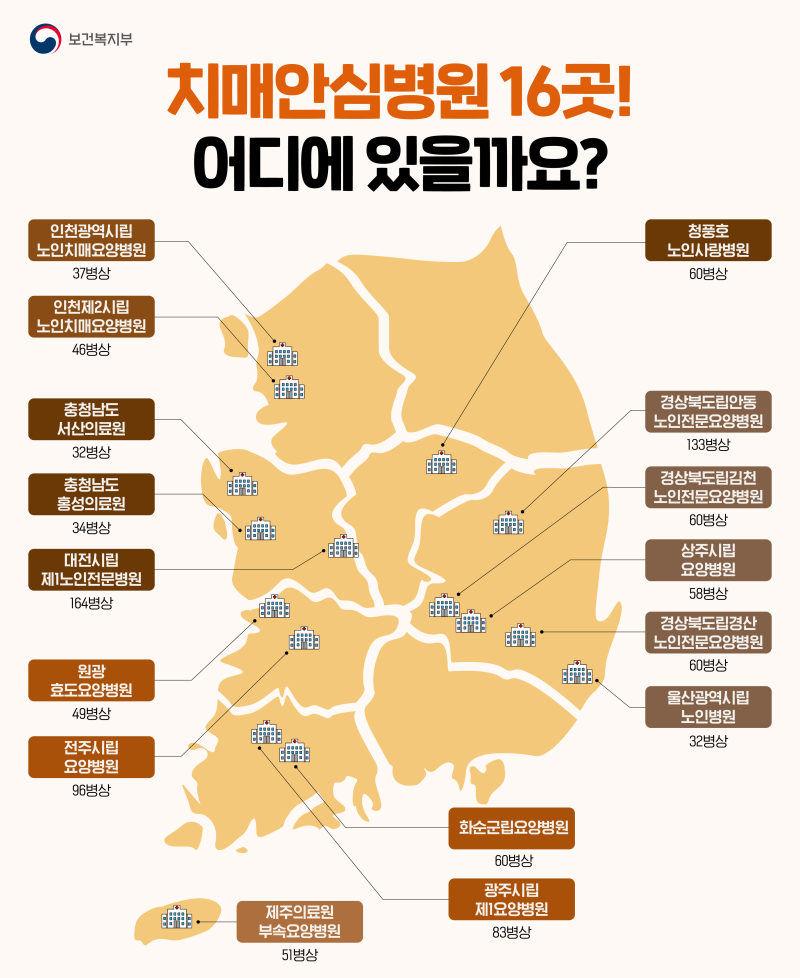 참고로 보건복지부는 앞으로 치매안심병원이 전국적으로 균형 있게 확대될 수 있도록 지원할 예정으로 관련 병원 및 지방자치단체도 적극적으로 지정을 신청하는 등 관심을 가져주시길 바란다고 밝혔습니다.