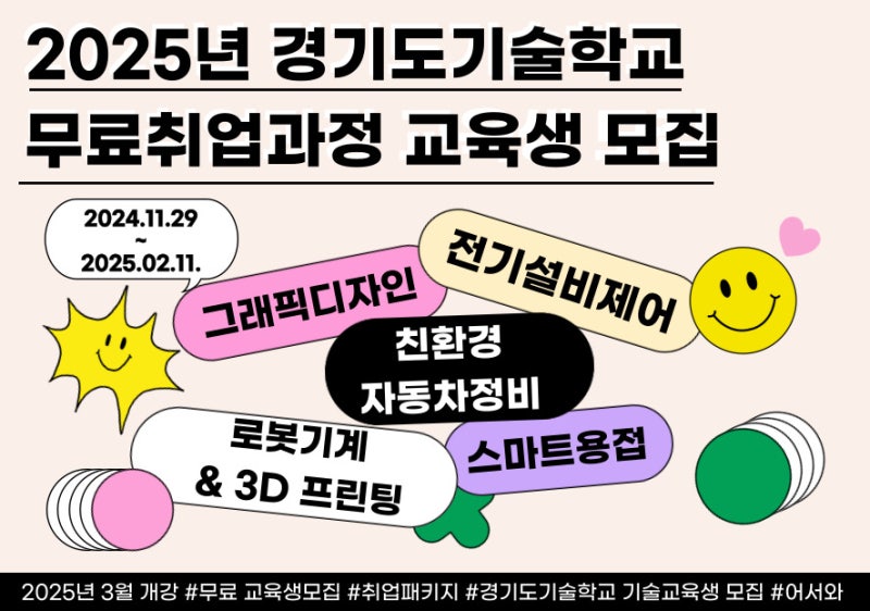 기술인을 꿈꾸는 경기도민분들의 많은 지원 부탁드린다고 하는데 2025년 경기도 기술학교 무료 교육생 모집 신청에 대해서 알려드리겠습니다.