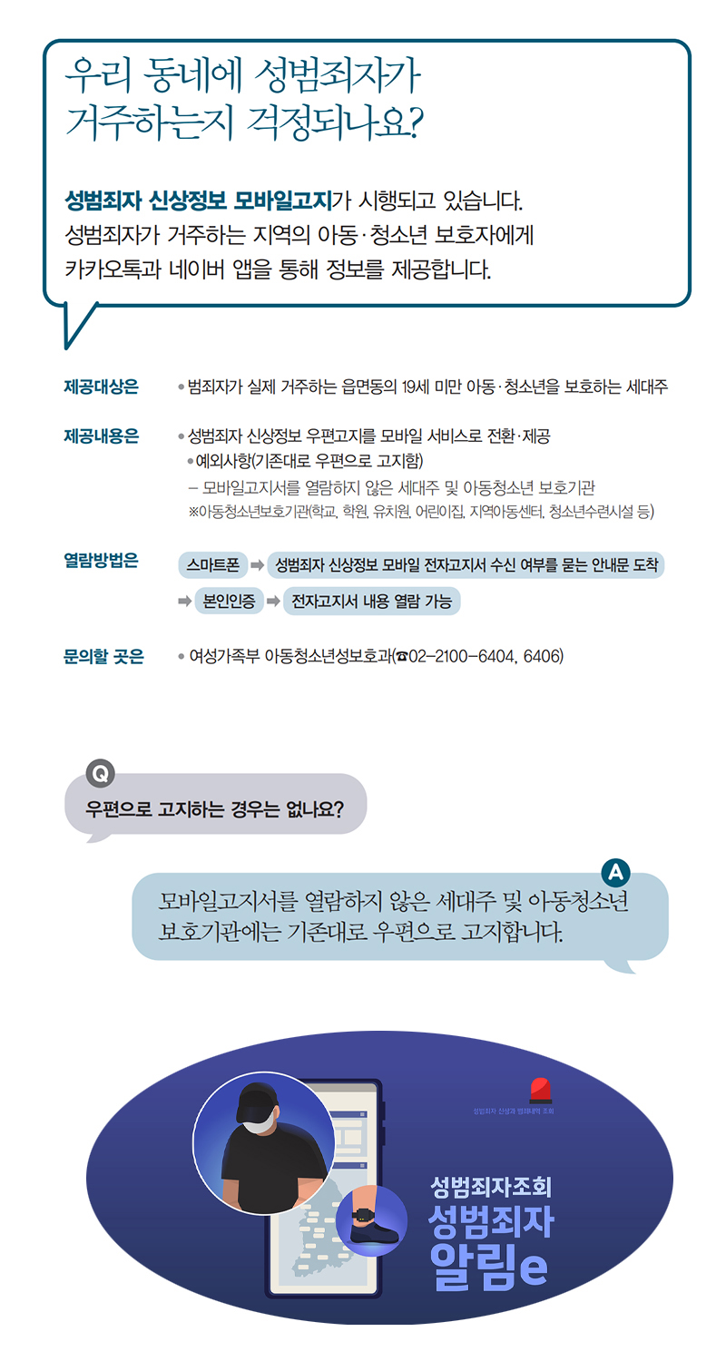 · 성범죄자 신상정보 우편고지를 모바일 서비스로 전환·제공