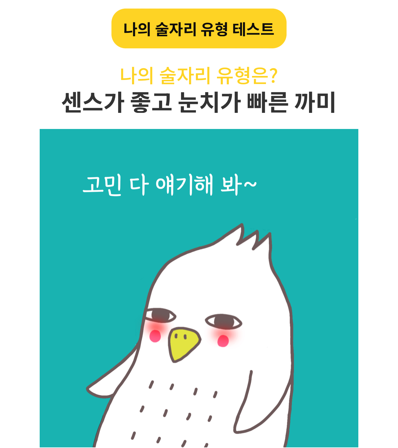 나의 술자리 유형은 센스가 좋고 눈치가 빠른 까미가 나왔습니다.