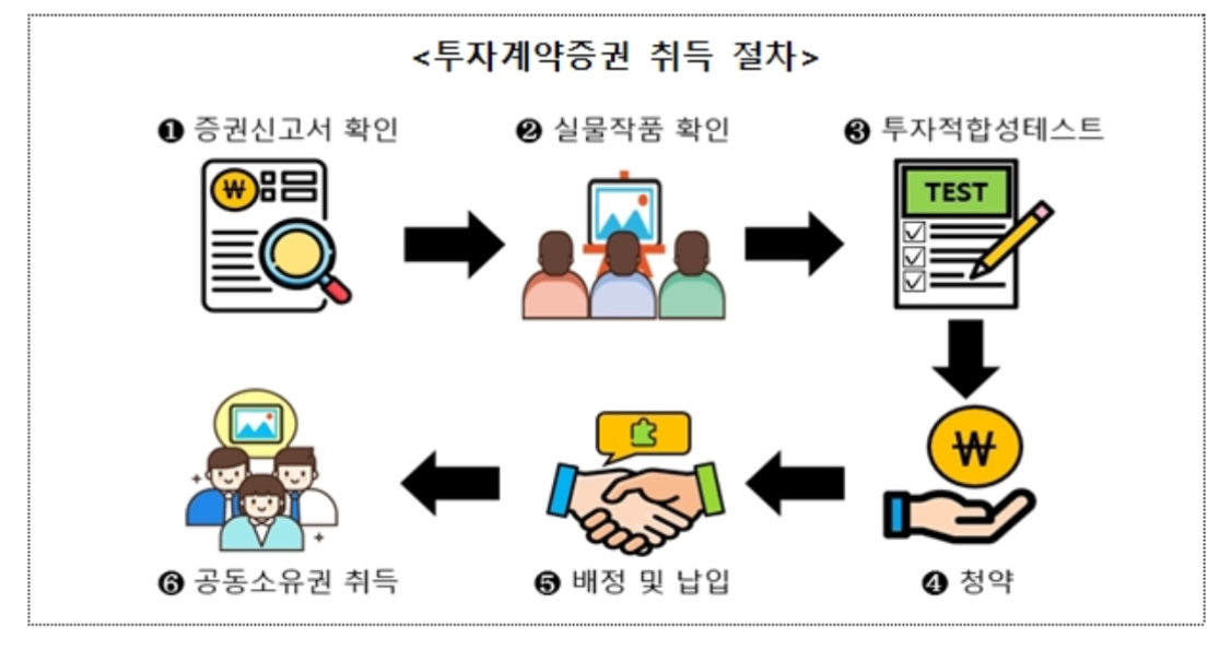 이후 조각투자업체는 미술계와 기초자산 가치산정, 실물보관, 청약·배정방식 등을 논의해 평가 객관성 보완, 청약 한도 축소, 투자 적합성 테스트 등을 신고서에 추가 기재했습니다.