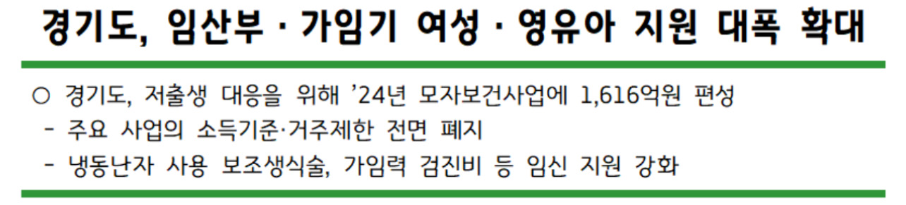 경기도가 저출생 대응을 위해 임산부와 가임기 여성, 영유아 지원의 모자보건사업을 확대 실시한다고 밝혔습니다.