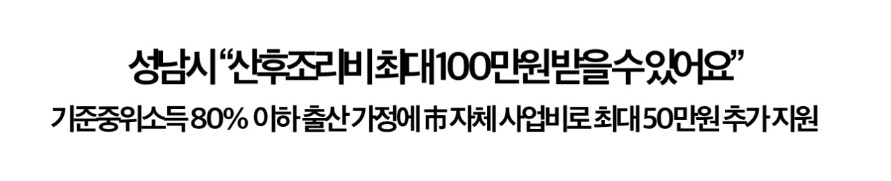 성남지역 기준중위소득 80% 이하의 출산 가구는 최대 100만원의 산후조리비를 지원받을 수 있게 됐다고 합니다.