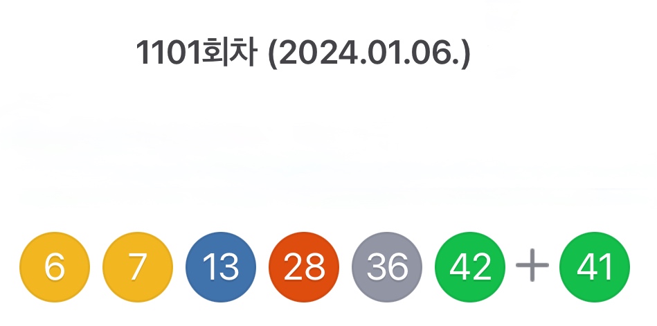 2024년 1월 6일 제1101회 로또 당첨번호 조회 결과가 발표되었으며 이번 로또 1등 당첨지역까지 같이 공개되었습니다.