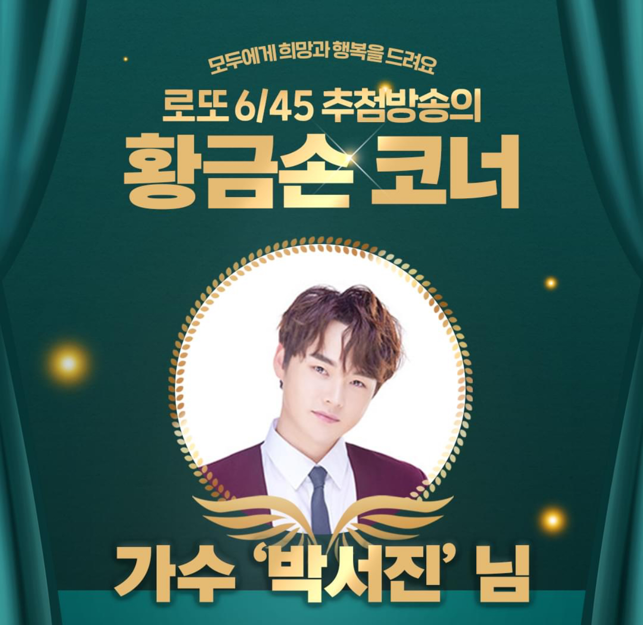 가수 박서진이 1101회 MBC ‘생방송 행복드림 로또 6/45’ ‘황금손’으로 출연한다고 합니다.