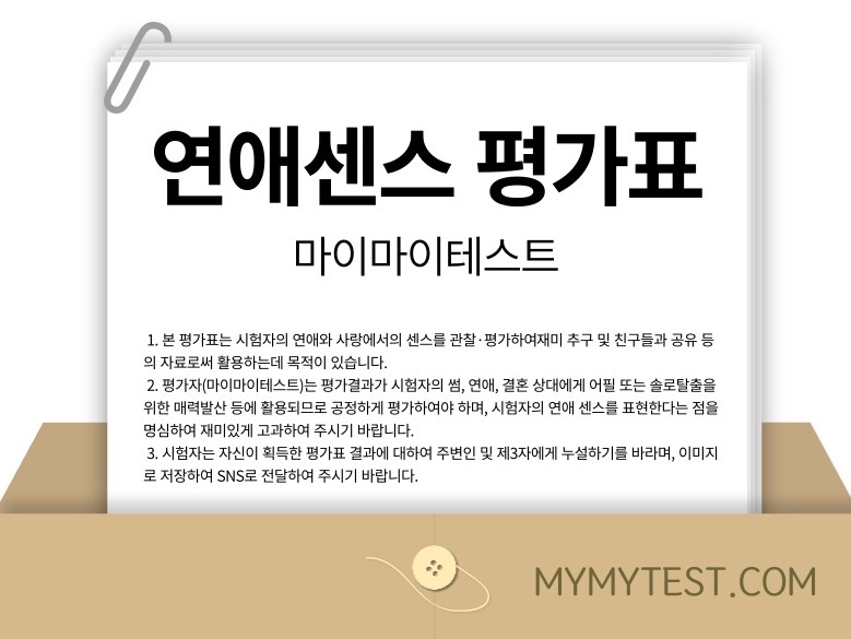 연애는 그냥한다고 되는게 아니라 사람간의 어느정도 센스가 있어야 하는데 나의 연애센스는 어떨지 알아볼 수 있는 마이마이 테스트에서 나온 연애센스 평가표를 소개드리려고 합니다.