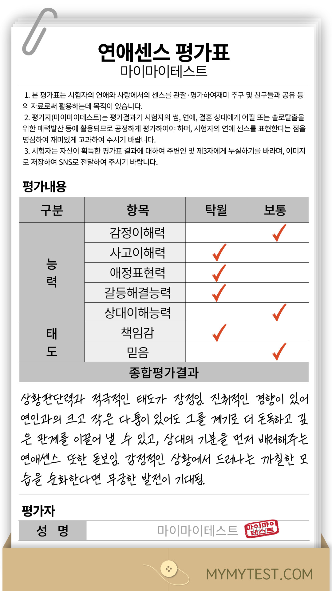 ■연애센스 평가표