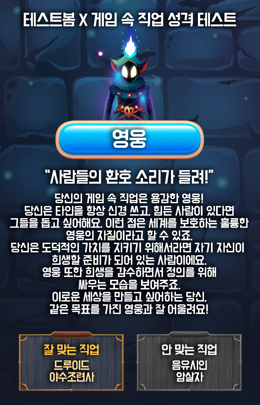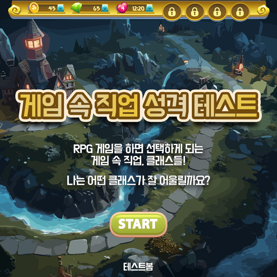 나는 어떤 클래스가 잘 어울릴지 알아보는 테스트봄에서 나온 ‘게임 속 직업 성격 테스트’를 소개드리려고 합니다.