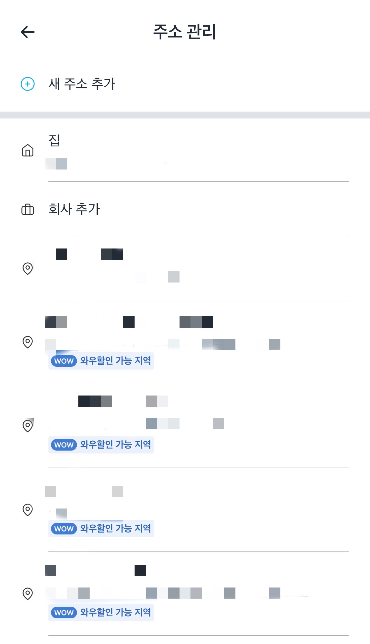 배달앱인 쿠팡이츠를 이용하다 보면 내 집이 아닌 다른 곳에서 시키다 보면 다음과 같이 주소 기록 내역이 남게 됩니다.