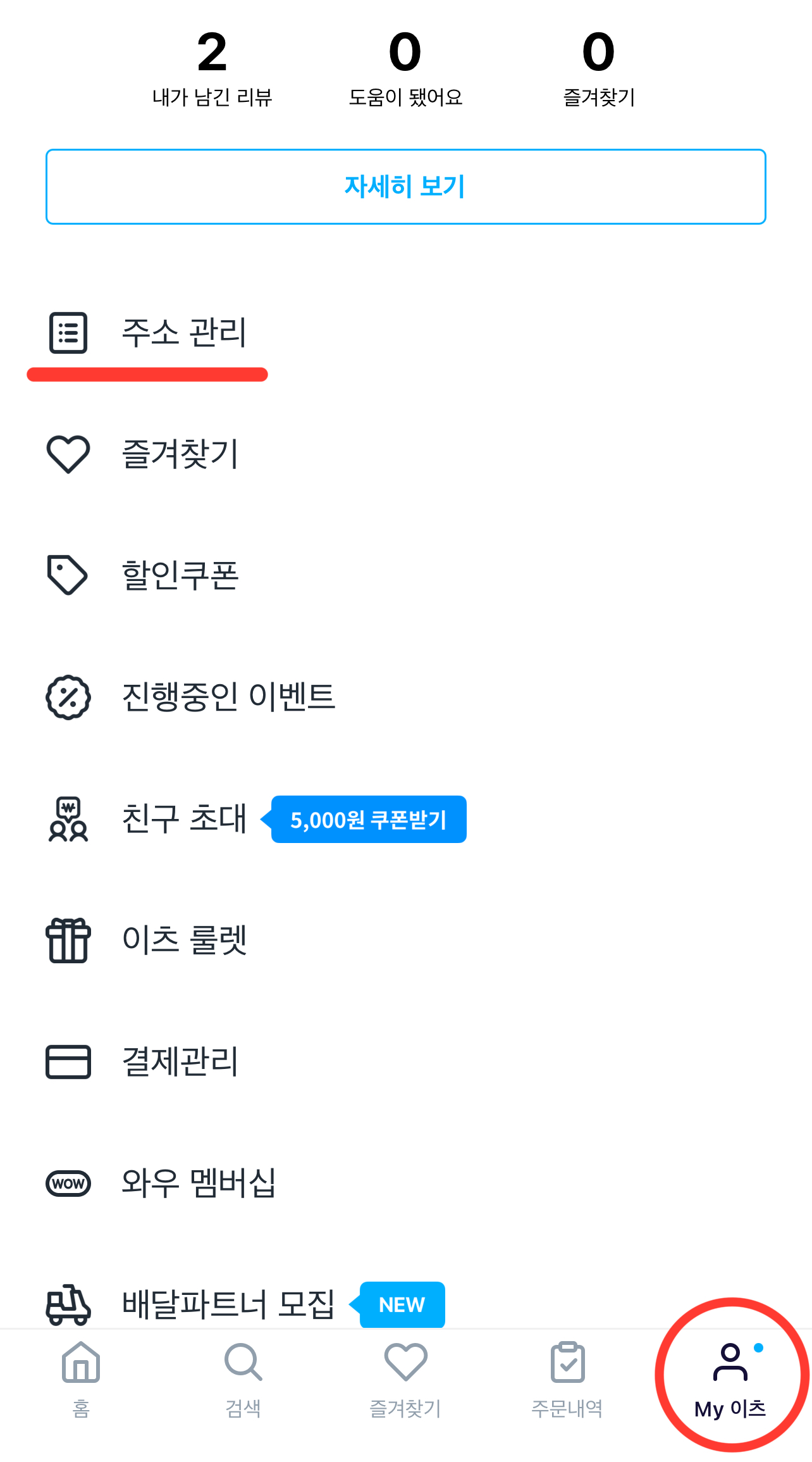 2. 하단에 My이츠 접속 후 주소 관리 클릭