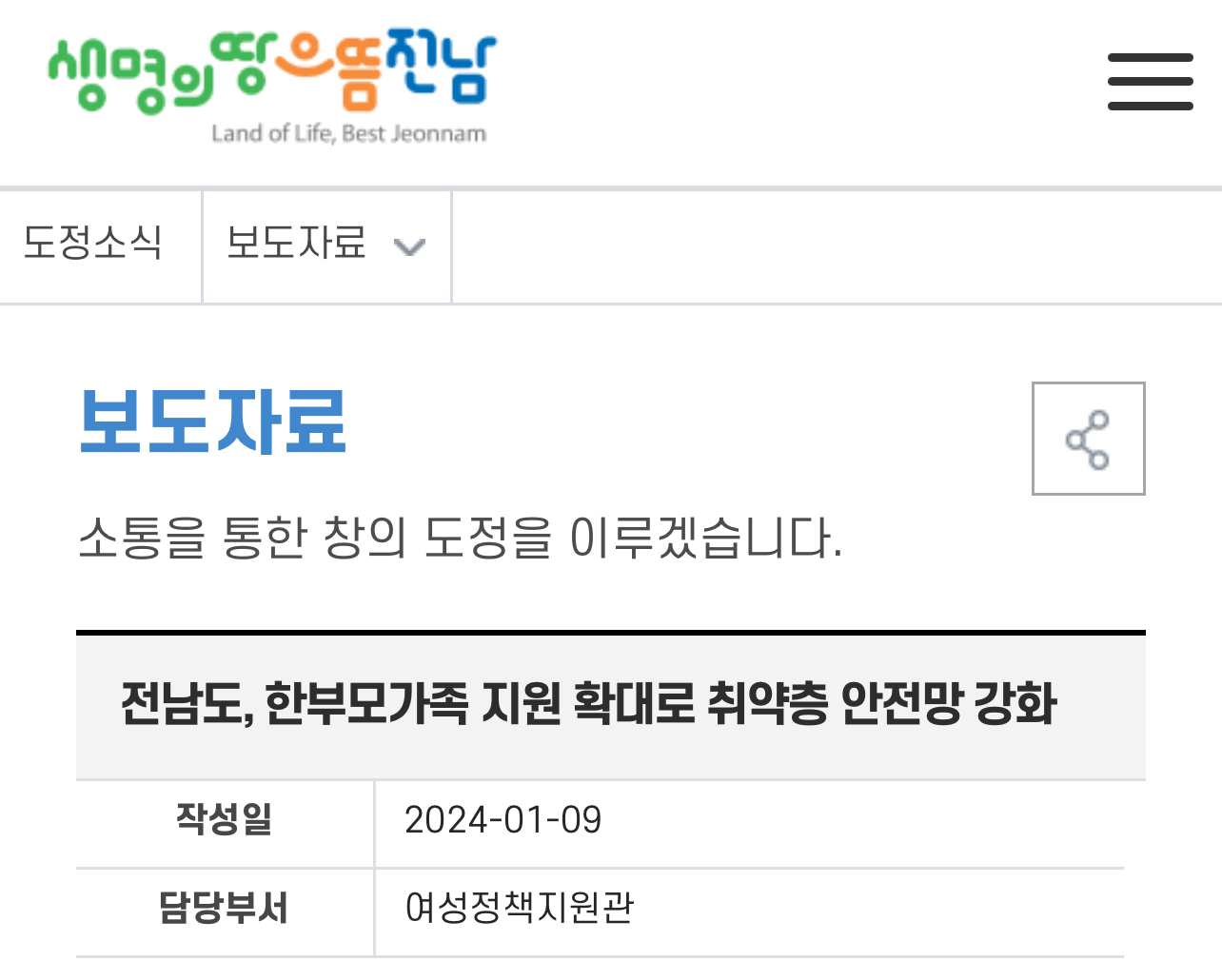 본 설명은 전남도 보도자료 출처를