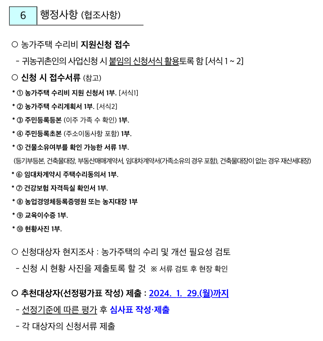 1. 사업명: 2024년도 상반기 귀농귀촌 농가주택 수리비 지원사업