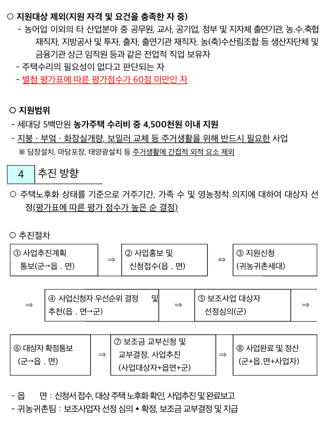 2. 지원내용: 농가주택 수리 및 개보수 지원