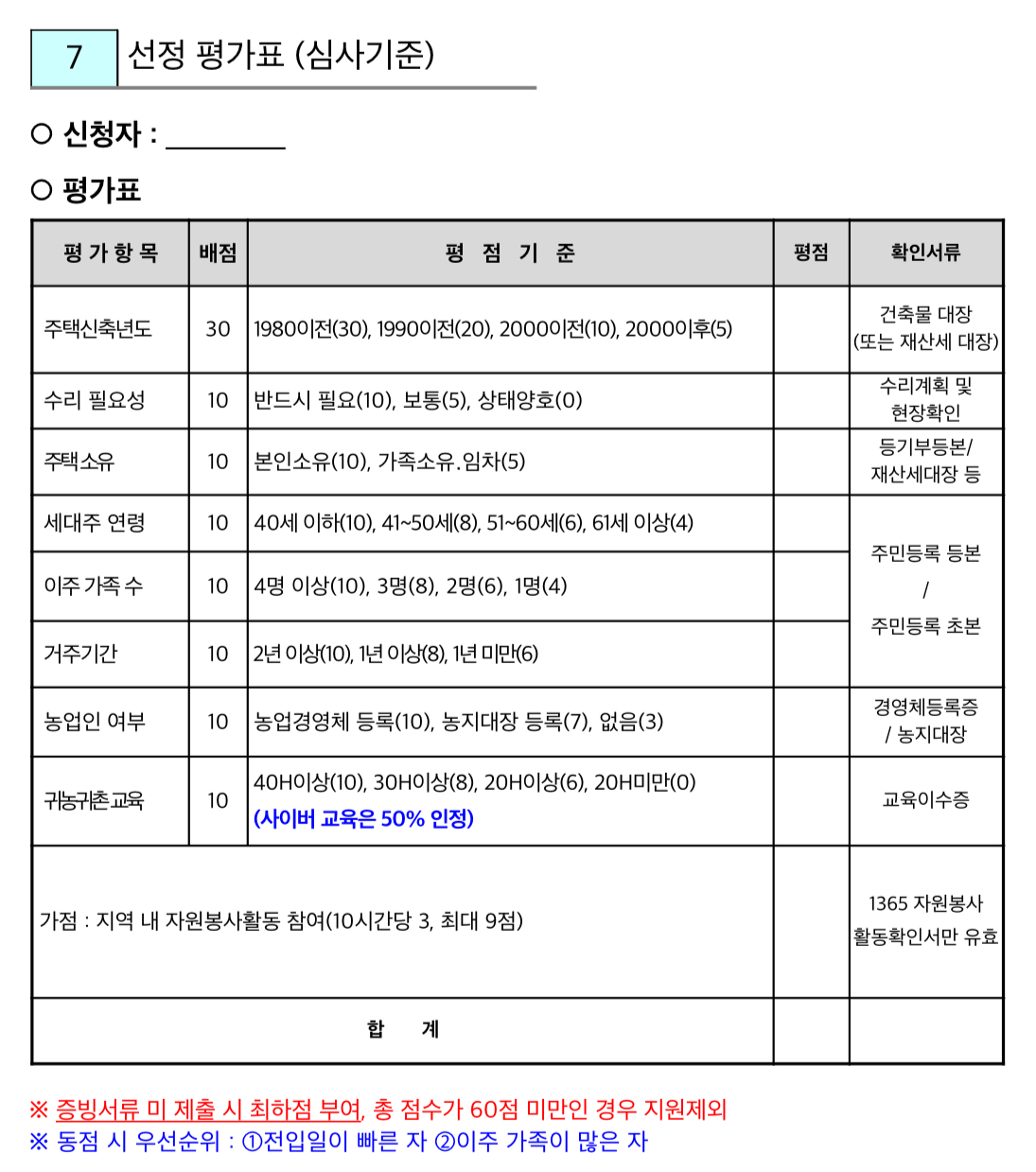 ※ 빈집 또는 노후주택을 구입(또는 5년 이상 임차) 후 수리하여 정착하고자 하는 자