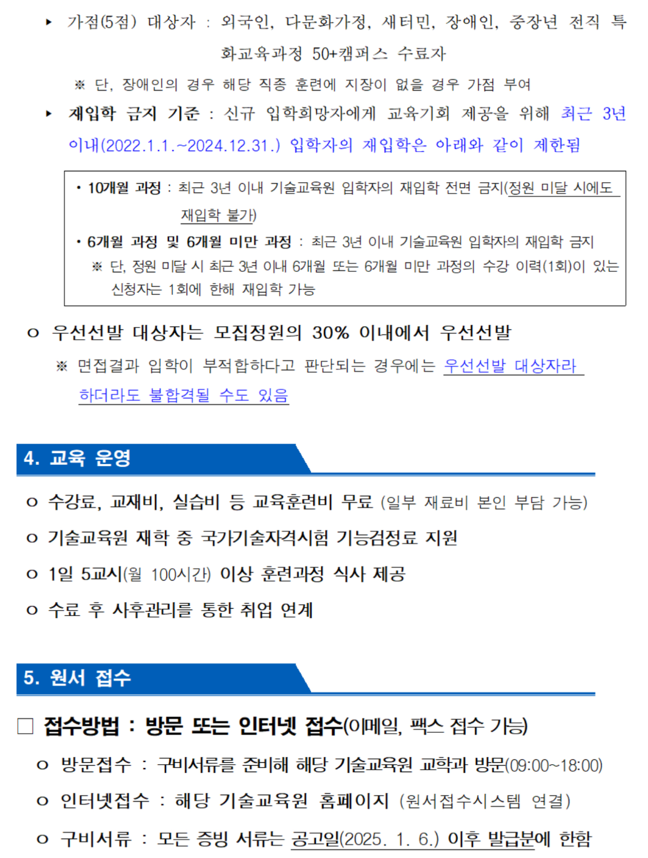 ※ 각 기술교육원마다 모집학과, 선발일정 등이 다르오니 각 누리집에서 자세한 내용을 확인 바랍니다.