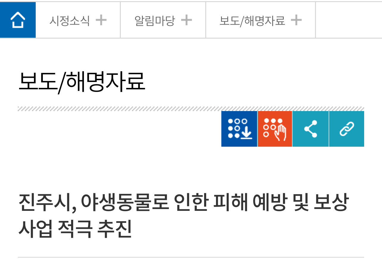 진주시는 농업인이 직접 경작하는 농작물에 대하여 야생동물에 피해를 입은 경우 농작물 피해액의 80% 이내로 농가당 최대 500만 원까지 지원하는 「농작물 피해보상 지원 사업」을 추진하고 있습니다.