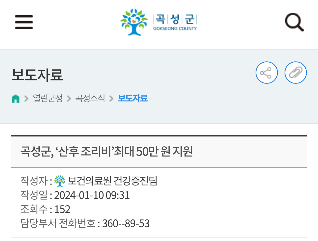 이밖에 곡성군은 출산친화 분위기 조성을 위해 출산장려금을 첫째아 300만원, 둘째아 400만원, 셋째아 500만원, 넷째아이상 700만원까지 지원하고 있으며 영유아 건강보험료 지원, 출산축하용품 지급, 산모‧신생아 건강관리지원사업 본인부담금 지원, 키즈맘쉼터 육아용품과 임산부 건강관리 물품 대여 등 출산 지원을 위한 다양한 시책을 추진 중입니다.