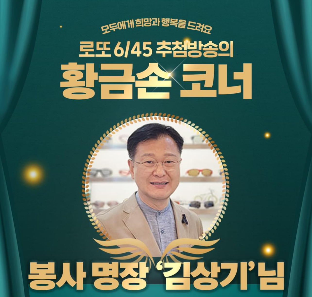 수십 년간 봉사 및 기부 활동으로 이웃사랑을 실천한 '봉사 명장' 김상기 씨가 1104회 MBC '생방송 행복드림 로또 6/45'의 '황금손'으로 출연한다고 밝혔습니다.