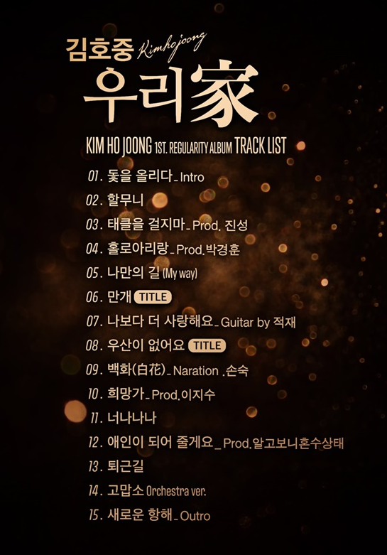 김호중은 ‘우리家’를 통해 다양한 히스토리가 담긴 풍성한 15개 트랙으로 전 세대 리스너들의 감성을 저격했고, 더블 타이틀 ‘만개’와 ‘우산이 없어요’는 각종 온라인 음원 차트 상위권에 이름을 올리며 ‘트바로티’의 저력까지 뽐낸 바 있다.