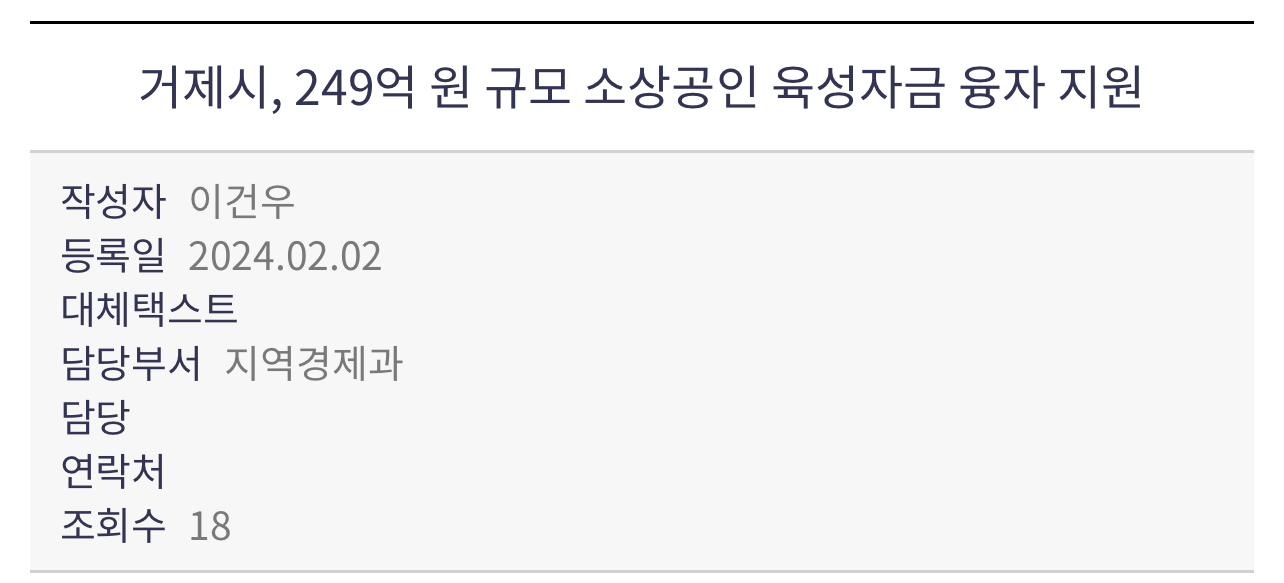 보다 자세한 내용은 거제시 홈페이지 고시공고란에 게재된 공고문을 참고하거나 지역경제과(☎639-4112~4)로 문의하면 됩니다.