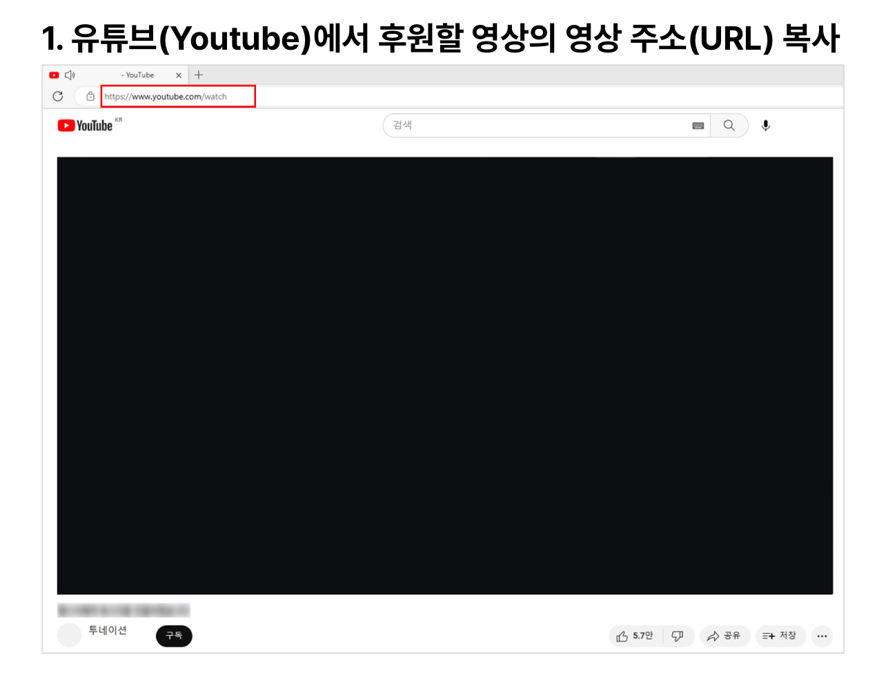 1. 유튜브(Youtube)에서 후원할 영상의 영상 주소(URL) 복사