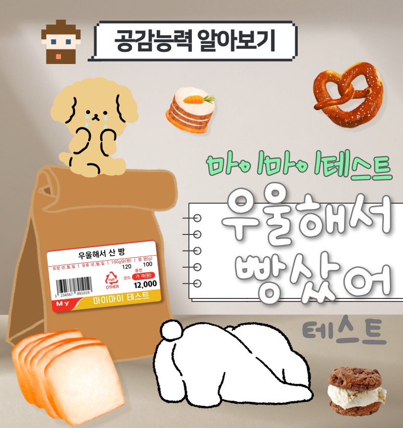마이마이테스트라는 사이트에서 공감능력을 알아보는 ‘우울해서 빵샀어 테스트’라고 나왔는데 여러분들께 소개드리도록하겠습니다.