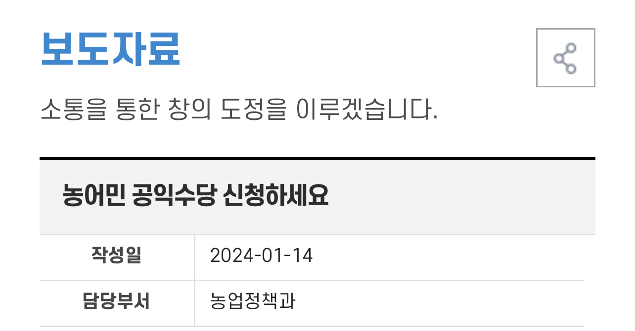 시군에서는 지급 요건 확인 등을 거쳐 2024년 3월께 지급 대상자를 최종 결정하고 전남도는 지급 대상자로 확정된 농어민에게 공익수당 60만 원을 4월께 지역화폐로 지급한다고 합니다.