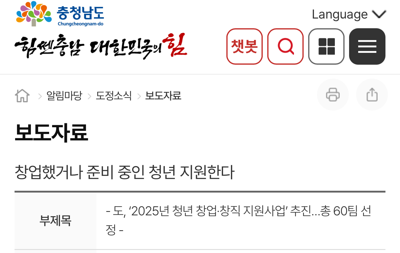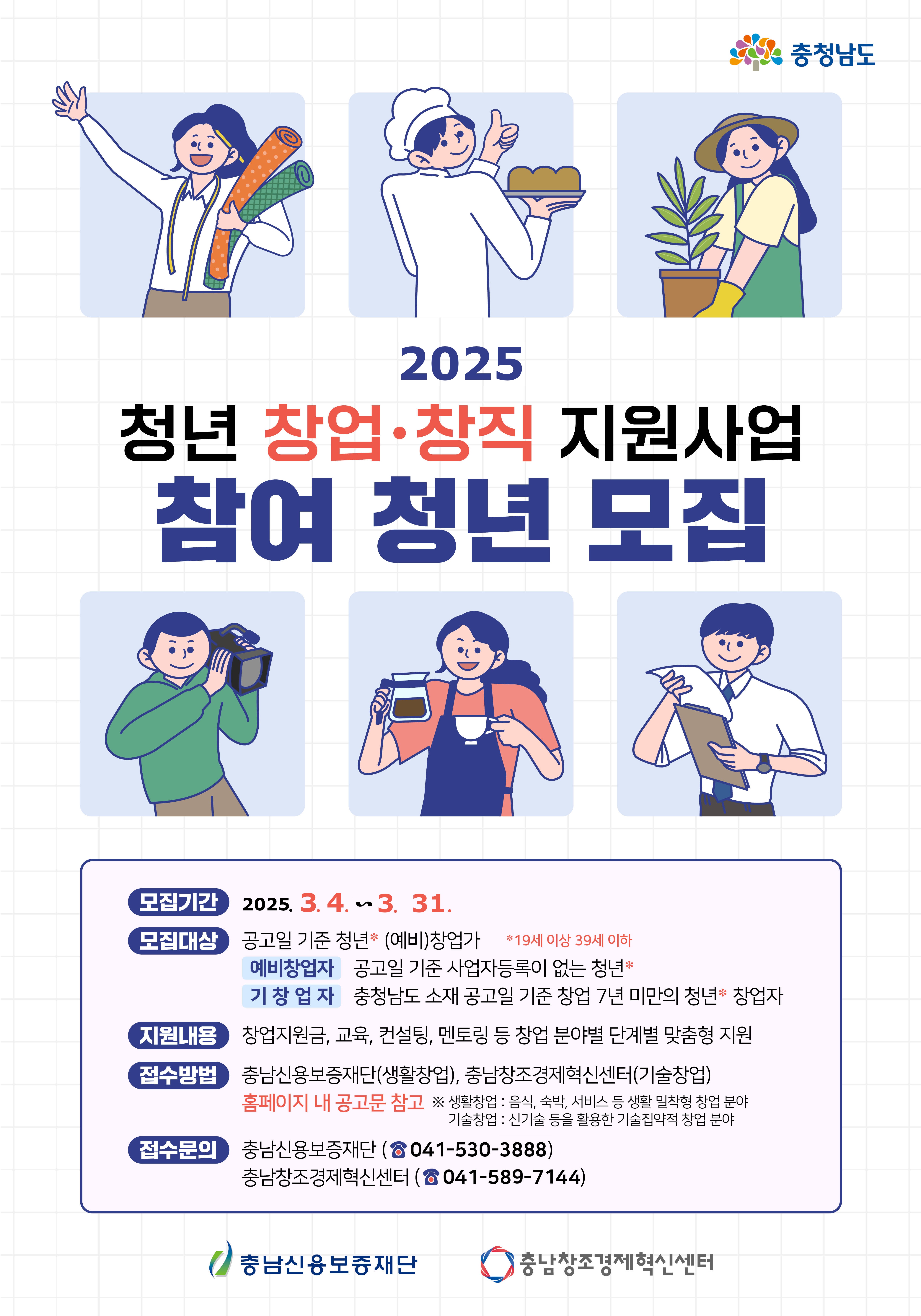 충남도는 창업을 계획하는 청년을 위해 창업 전반에 도움을 주는 ‘2025년 충남 청년 창업・창직 지원사업’을 추진한다고 밝혔습니다.