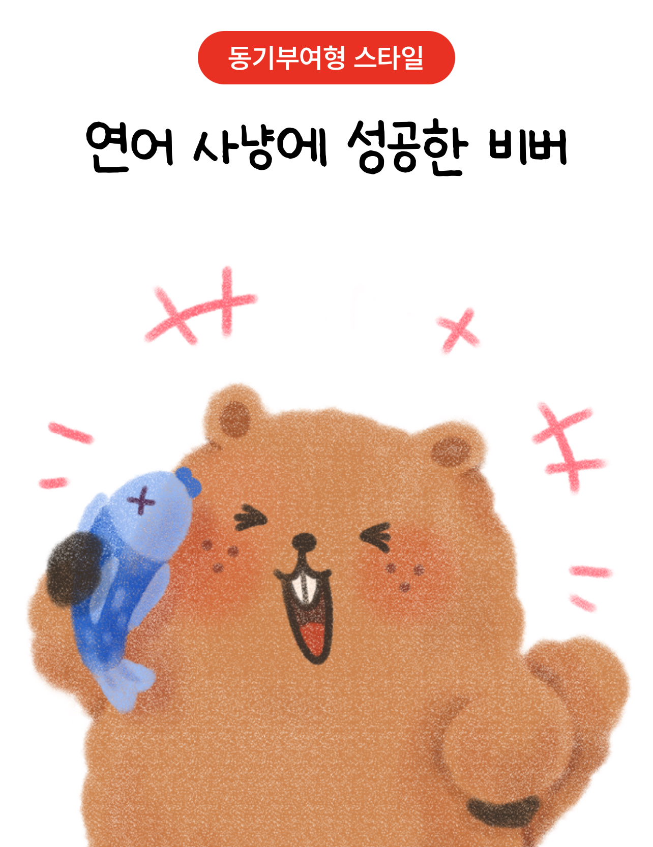 동기부여형 스타일인 연어 사냥에 성공한 비버가 나왔습니다.
