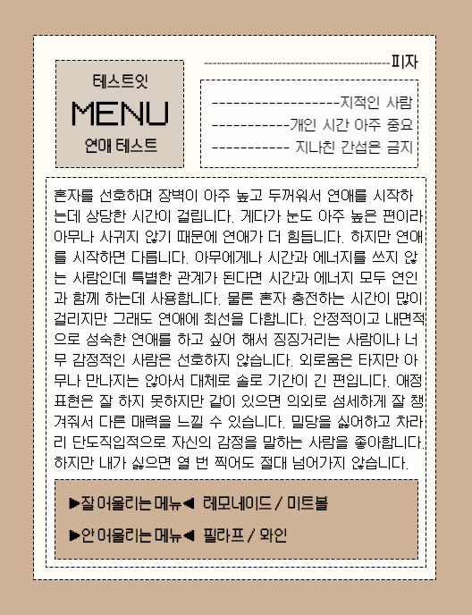 ■메뉴 연애 테스트 mbti