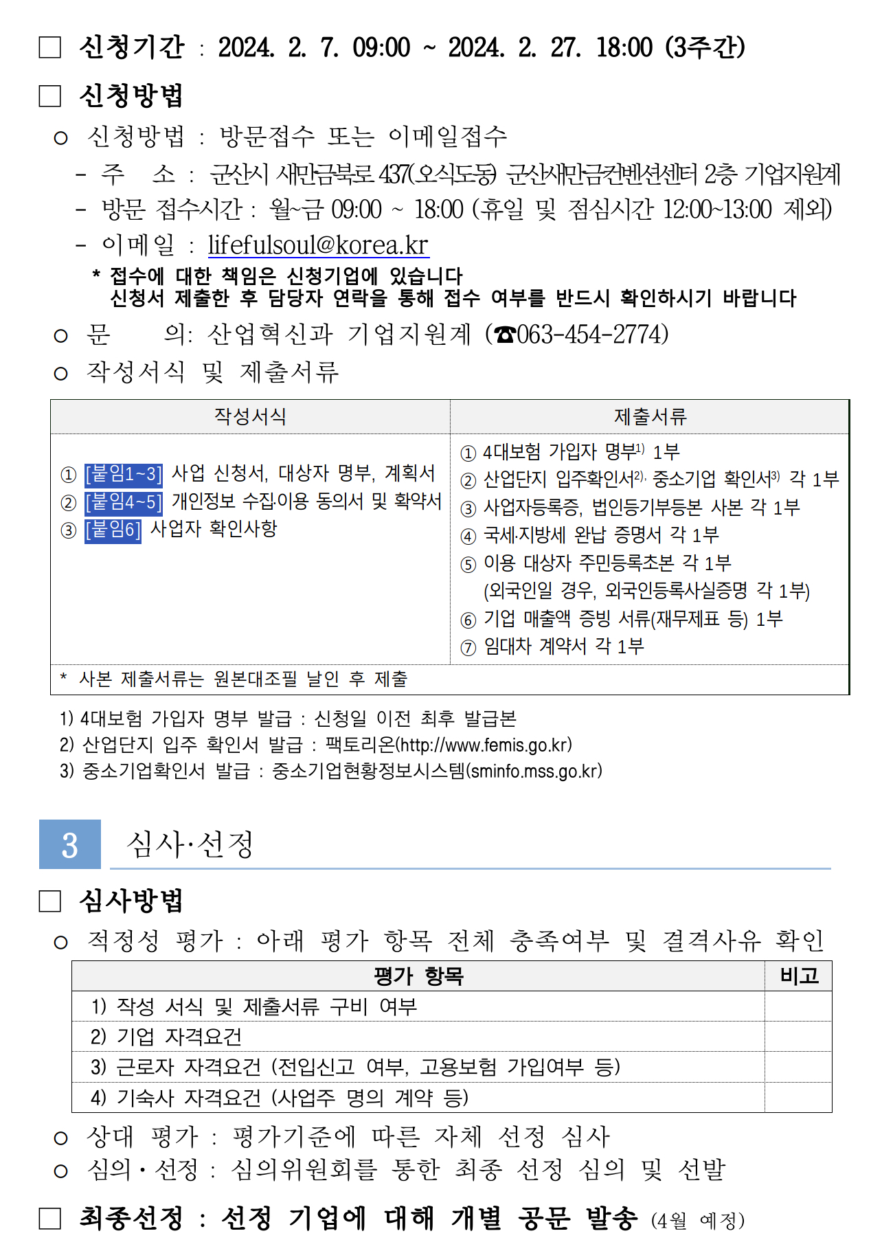 기타 문의사항은 군산시청 산업혁신과 기업지원계로 문의하면 됩니다.