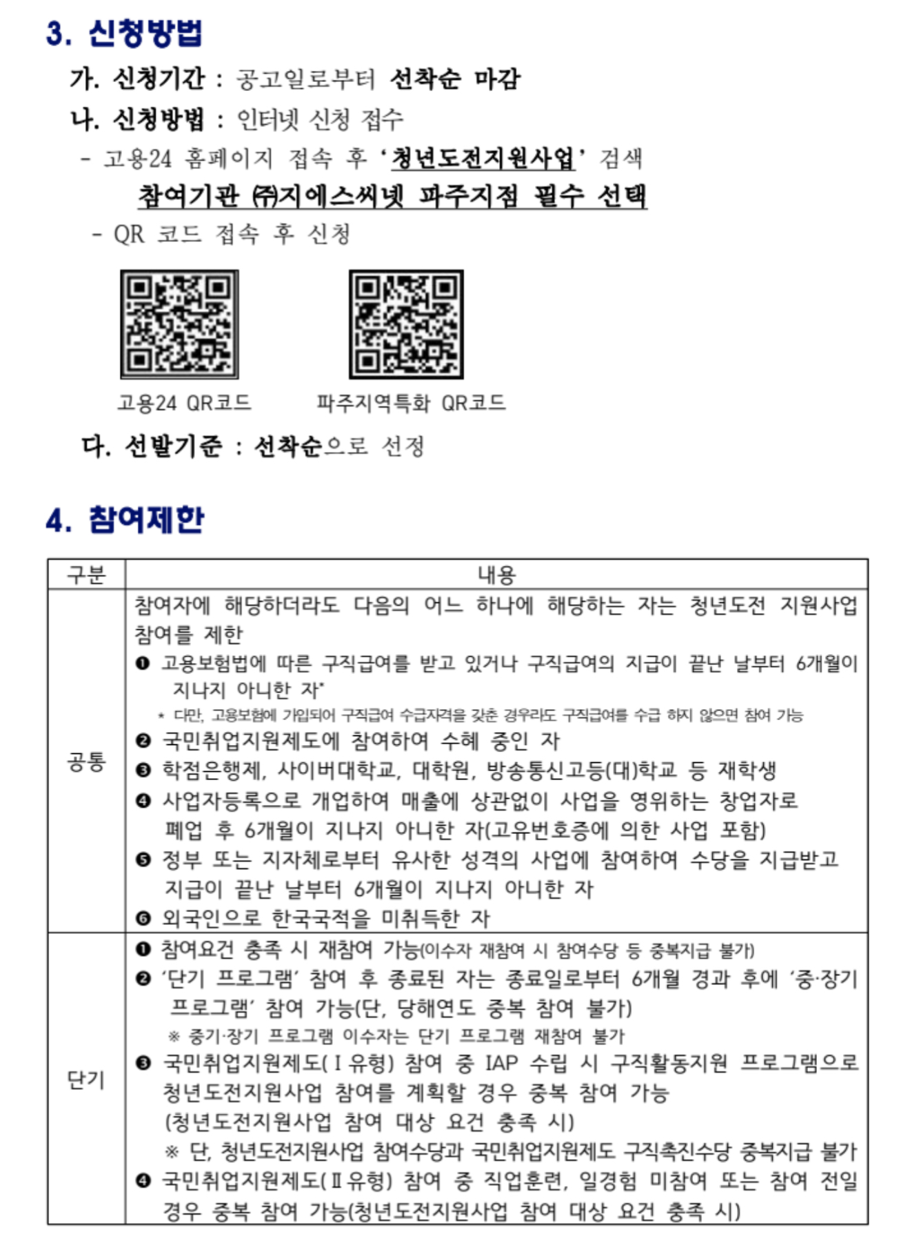 파주시 청년도전 지원사업 참여를 희망하는 구직단념청년 등은 고용24 누리집(www.work24.go.kr)을 통해 신청하면 됩니다.