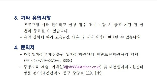 기타 궁금한 사항은 대전시청 일자리경제정책과(☏042-270-4572) 또는 대전일자리지원센터(☏042-719-8370~4, 8334)로 문의하시면 됩니다.