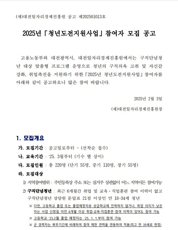 대전시가 '2025년 청년도전 지원사업 참여자'를 모집한다고 밝혔습니다.