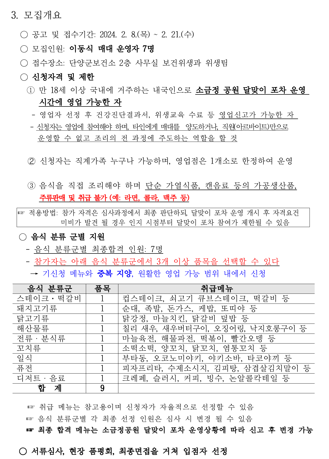 - 모집인원: 이동식 매대 운영자 7명