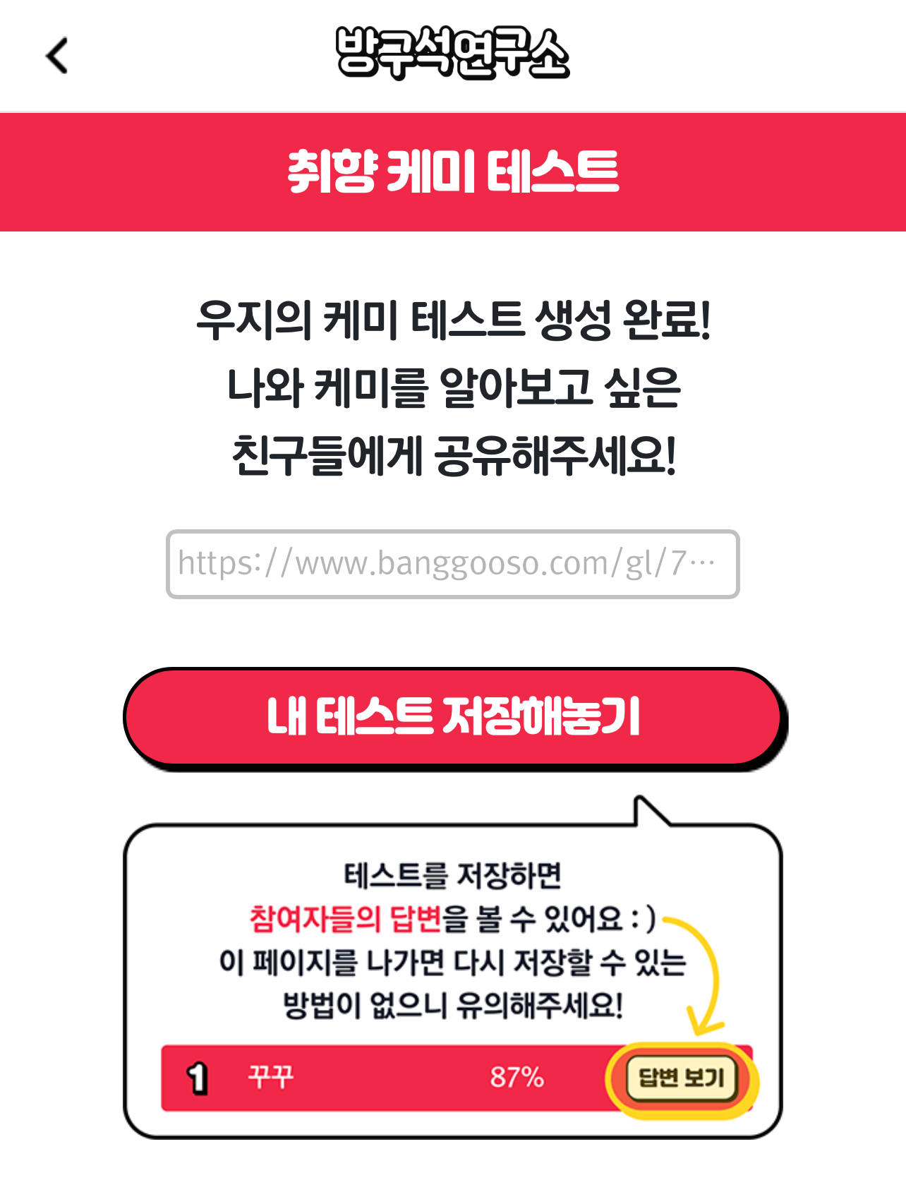 참고로 테스트를 저장하면 참여자들의 답변을 볼 수 있습니다.