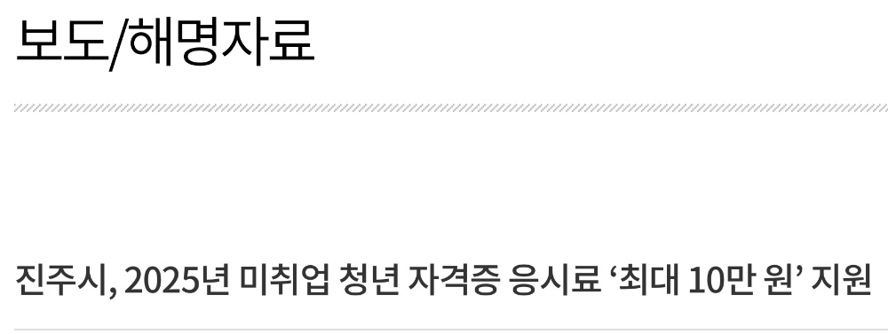 진주시는 오는 2025년 2월 17일부터 ‘2025년 진주시 청년 자격증 응시료 지원 사업’을 시행한다고 합니다.