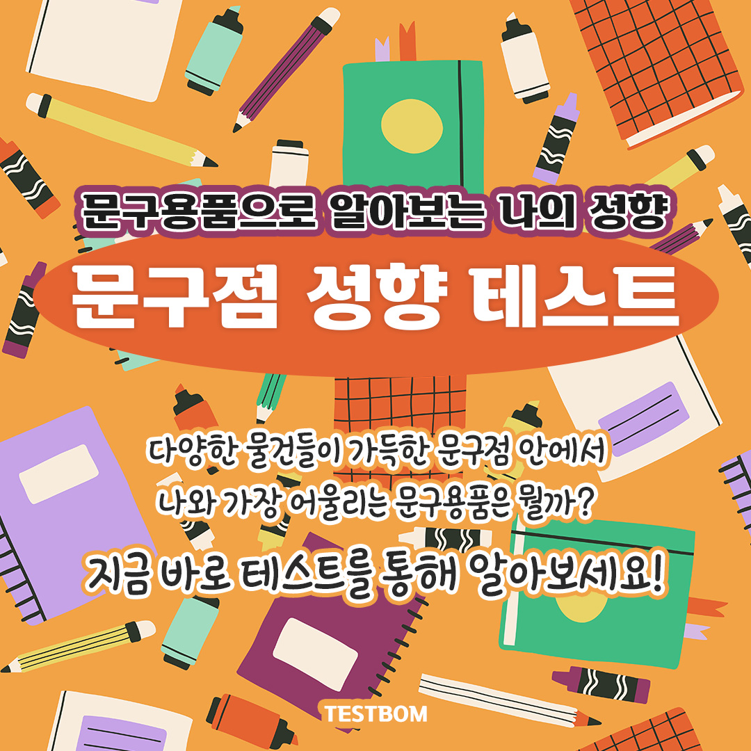 다양한 물건들이 가득한 문구점 안에서 나와 가장 어울리는 문구용품은 무엇일지 알아볼수 있는 테스트봄에서 나온 ‘문구점 성향 테스트’를 소개드리겠습니다.
