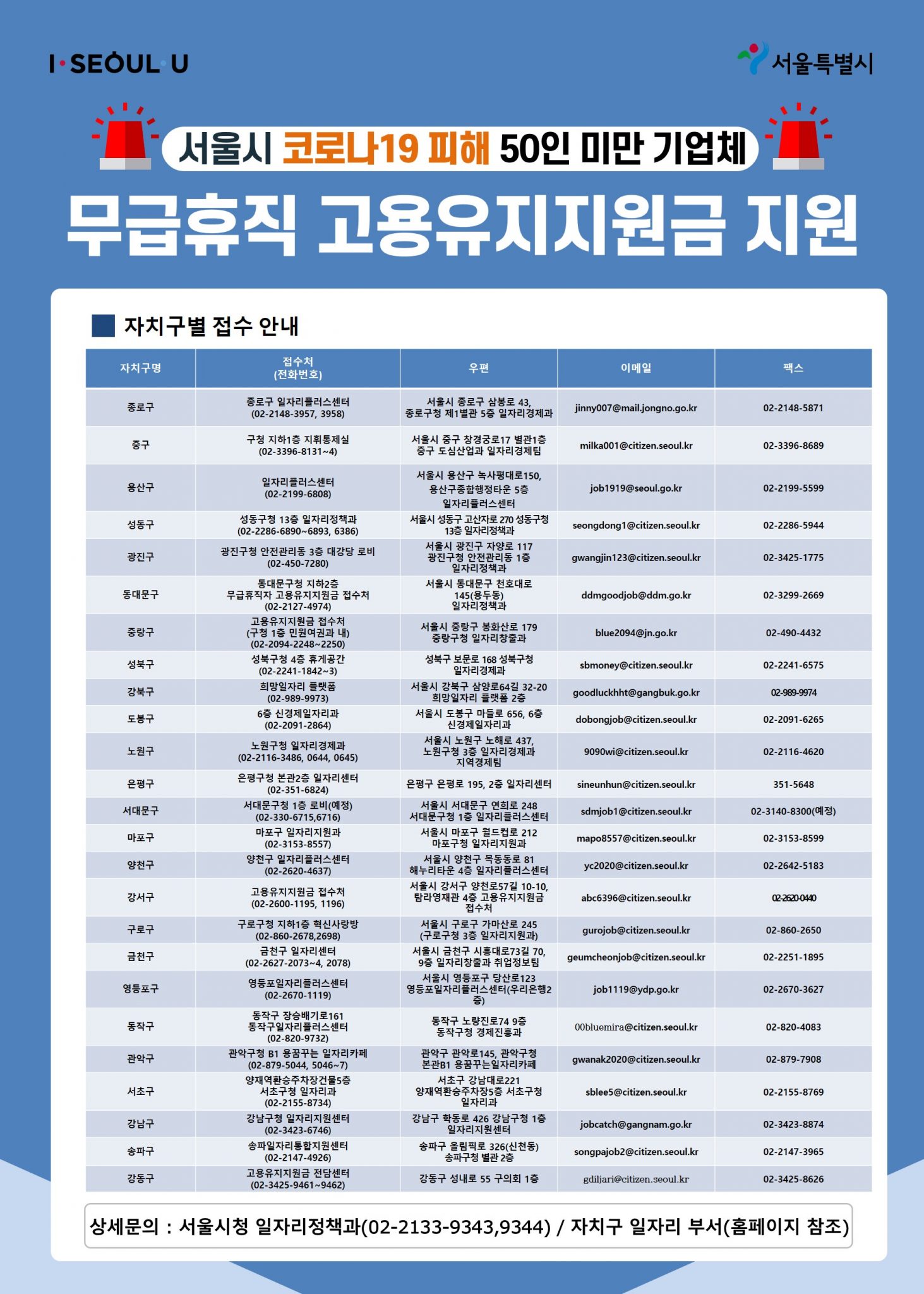 각 서울시 내 자치구 일자리부서(홈페이지 참조)