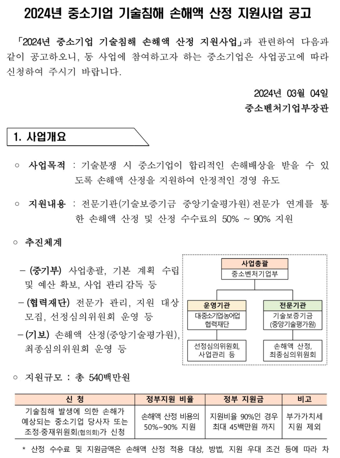 중소벤처기업부는 오는 2024년 3월 4일부터 ‘손해액 산정지원’ 사업 신청·접수를 받는다고 밝혔습니다.