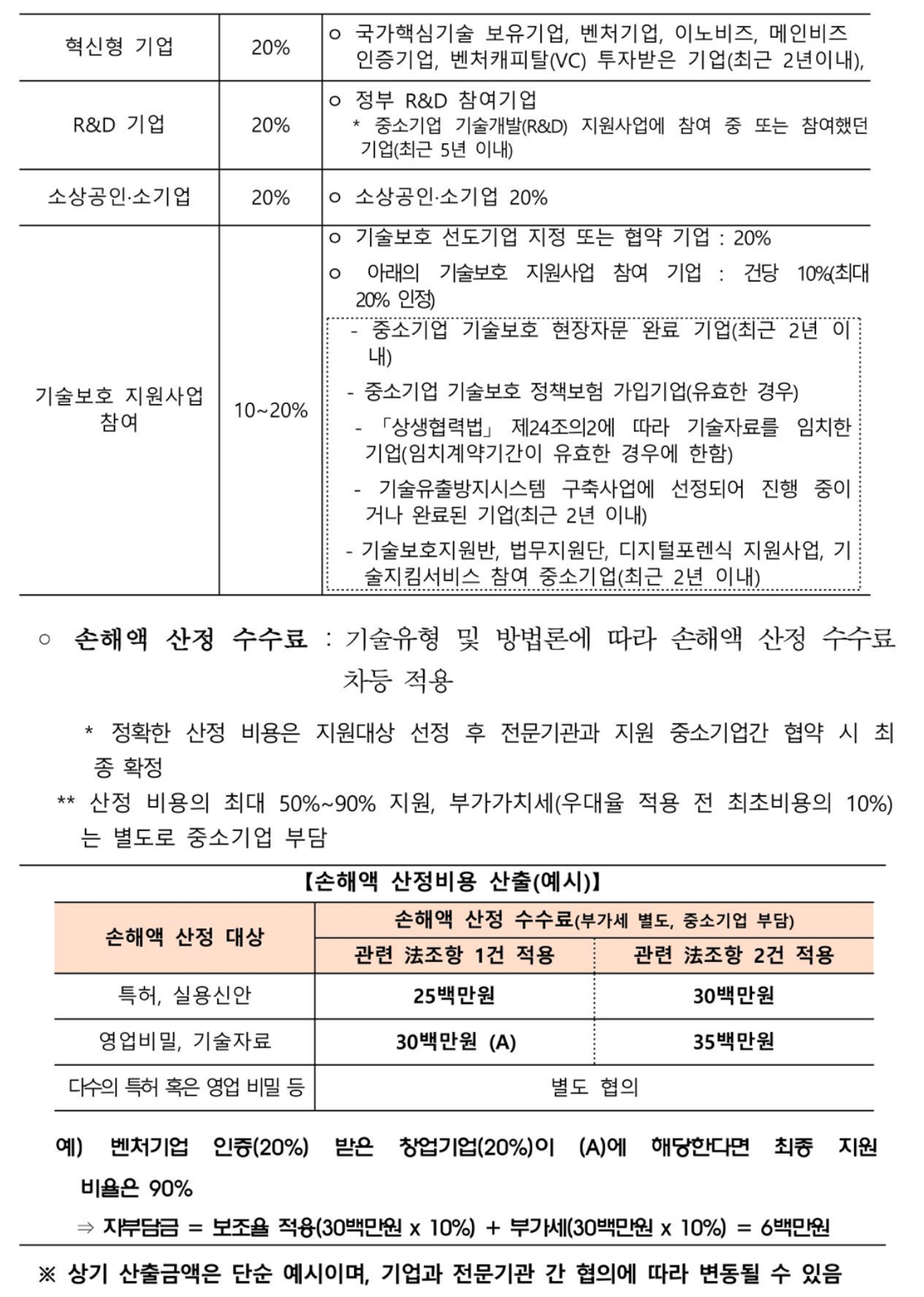 기술침해 피해를 입은 중소기업들이 법원에서 합리적인 손해배상액을 인정받을 수 있도록 정부가 손해액 산정에 필요한 비용의 최대 90%까지 지원한다고 합니다.