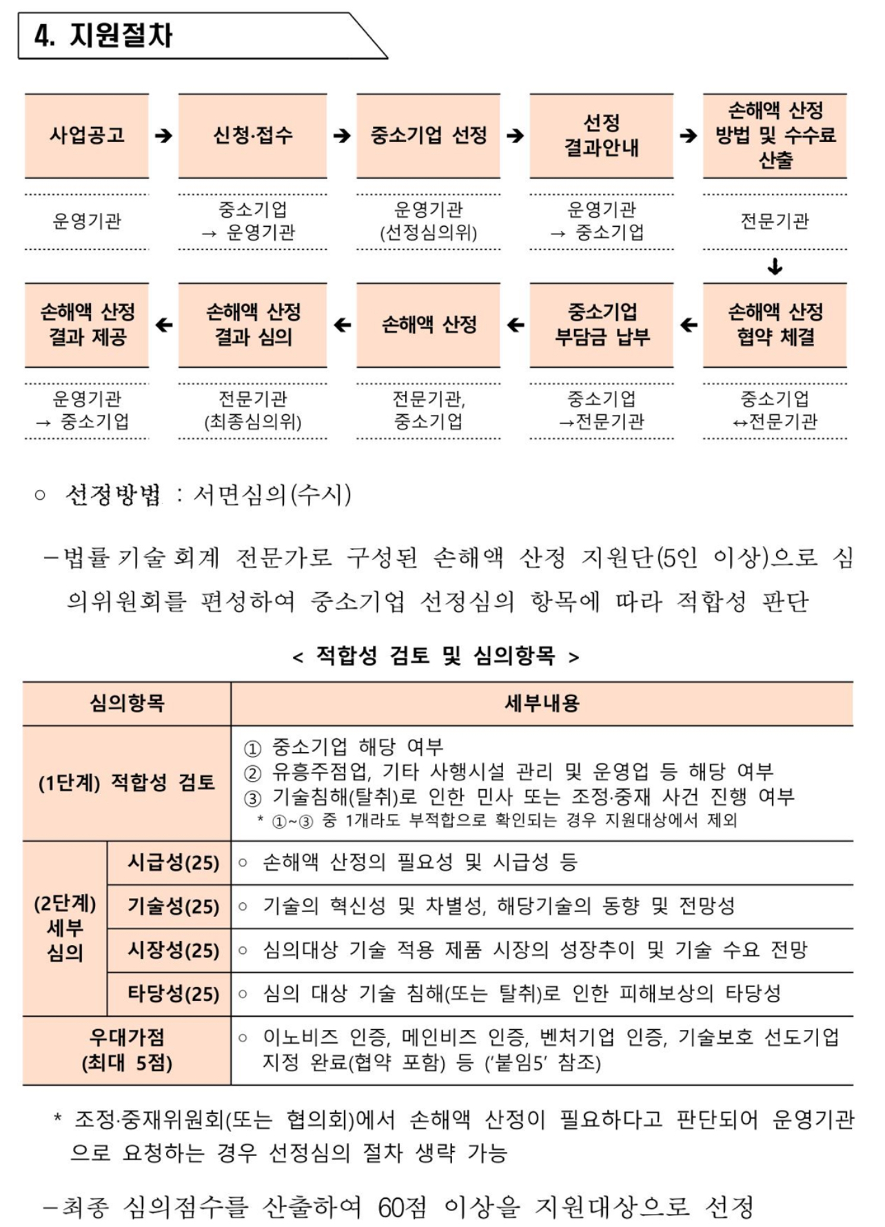 손해액 산정지원은 중소기업이 기술침해를 당했을 때 기술평가기관인 기술보증기금과 변호사, 회계사 등의 외부 전문가가 협업해 정확한 피해금액을 산정하는 사업입니다.
