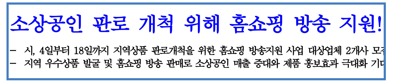 전북 전주시가 우수한 제품을 생산하는 소기업과 소상공인의 판로 개척을 돕기 위해 홈쇼핑 방송을 이용한 홍보를 지원한다고 합니다.